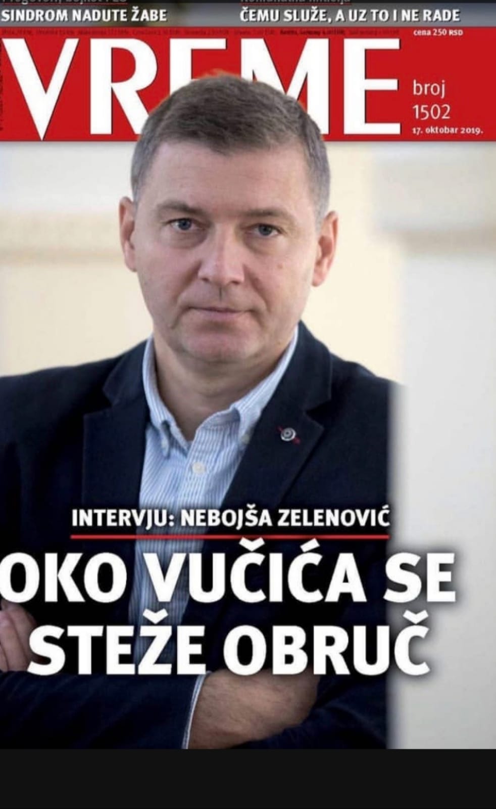 (Интервју Небојше Зеленовића, председника странке Заједно за Србију и градоначелника Шапца, за недељник "Време" од 17. октобра 2019. године. Разговор водио новинар Радослав Ћебић)